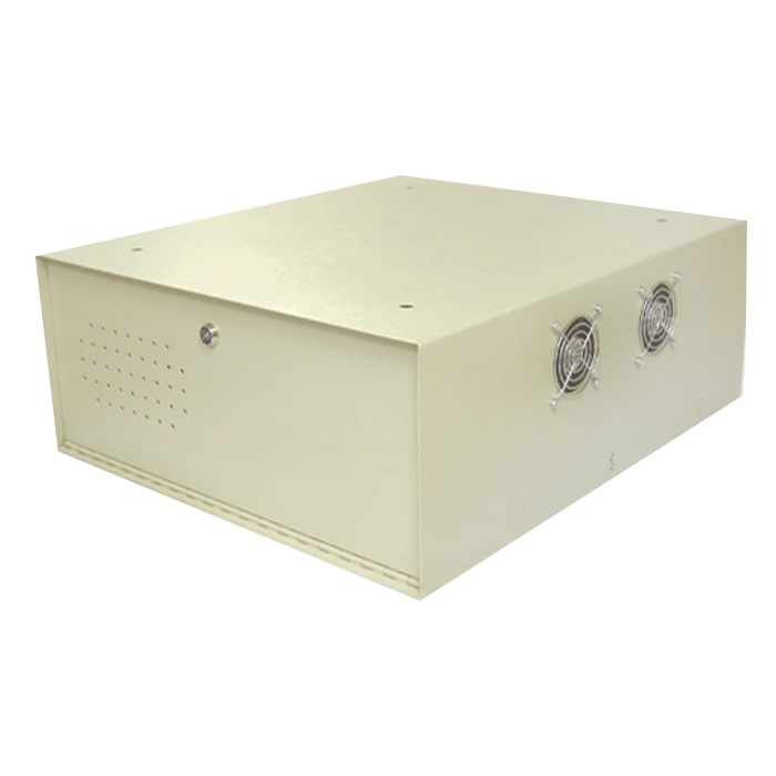 Haydon Large enclosure suitable for Dynamic, Hikvision, Samsung, DM, Video switch & most other ranges of NVRs/DVRs 2 × 12V fans expelling hot air from the cabinet 12V power supply complete with mains cable Vented for good airflow reducing the risk of overheating. Front venting to help airflow for front-mounted hard drives. Easy cable access for all cabling, power, BNC, etc.