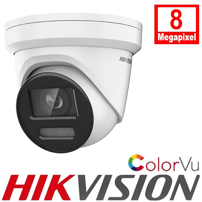 This is DS-2CD2387G2-LU Hikvision AcuSense 8MP fixed lens ColorVu turret camera with the built-in mic.