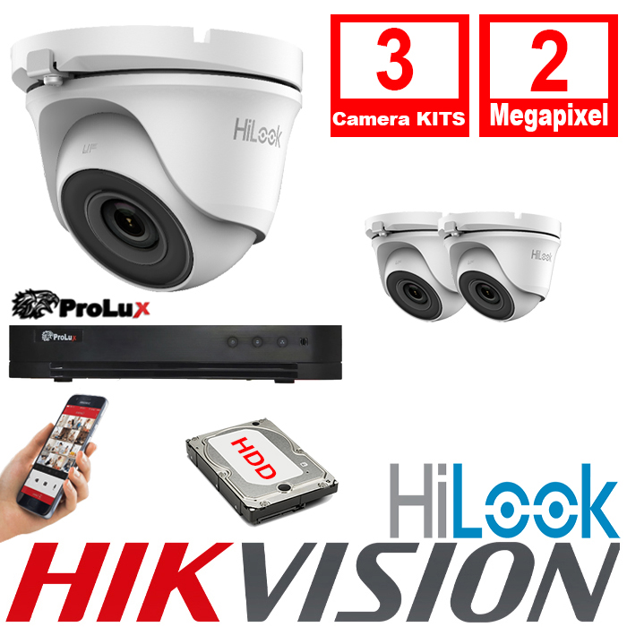 - 3x HiLook By Hikvision THC-T120-MC CCTV Turret Cameras 2 Megapixel 20m IR