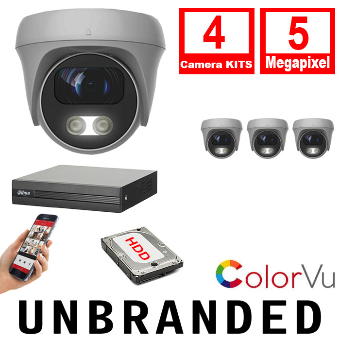 - 4x Unbranded CAM-COLORVU-5MP-LTW Hybrid Full Colour CCTV Turret Cameras 5Megapixel 25m IR