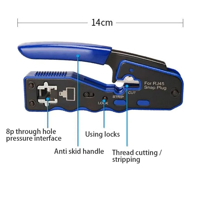 The EZ 8P Crimping Plier is a versatile and efficient tool designed for crimping RJ45 connectors onto Ethernet cables. With its ergonomic design and reliable crimping mechanism, this plier provides a seamless and professional solution for creating secure and durable connections.